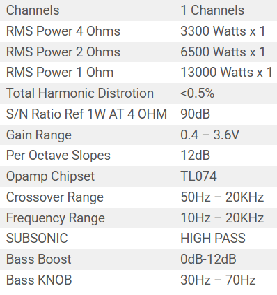 RMS POWER OUTPUT 4 OHM 3300W