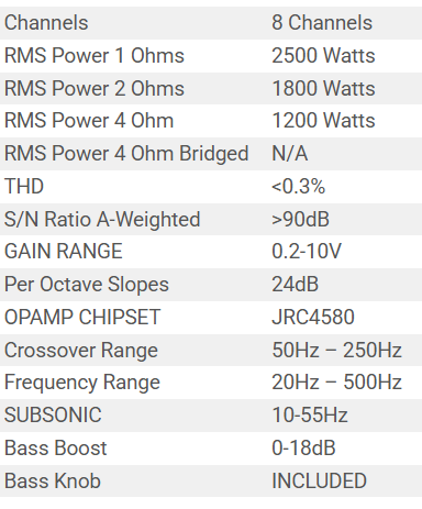 1800 W @ 2 Ohm