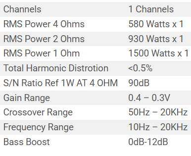 RMS POWER OUTPUT 4 OHM 580W
