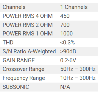 POWER RMS 4 OHM 450