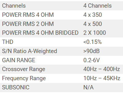 POWER RMS 4 OHM BRIDGED 2 X 1000