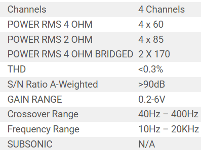 POWER RMS 4 OHM BRIDGED 2 X 170