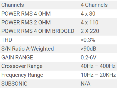 POWER RMS 4 OHM 4 x 80