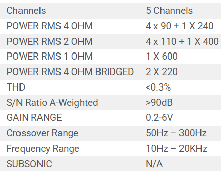 POWER RMS 4 OHM 4 x 90 + 1 X 240