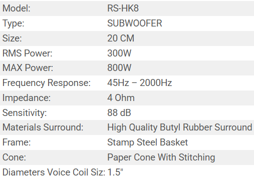 SUBWOOFER RS-HK8