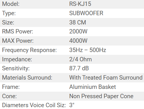 SUBWOOFER RS-KJ15