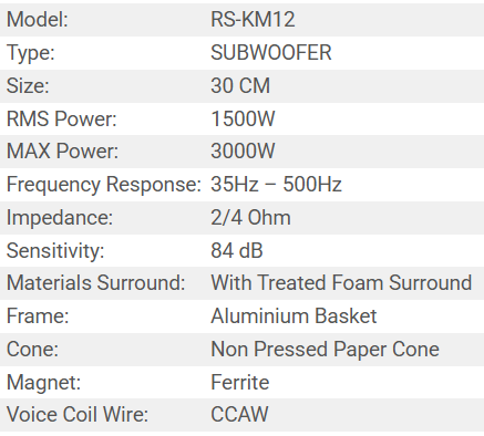 SUBWOOFER RS-KM12