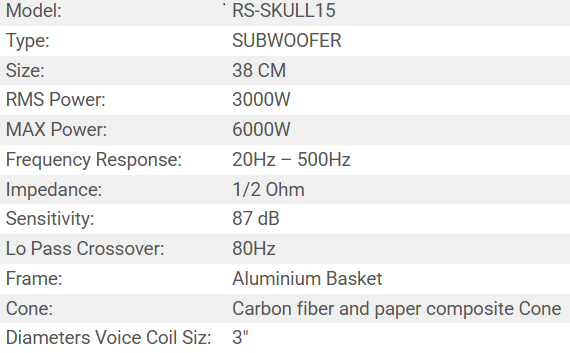 SUBWOOFER RS-SKULL15