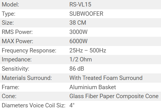 SUBWOOFER RS-VL15